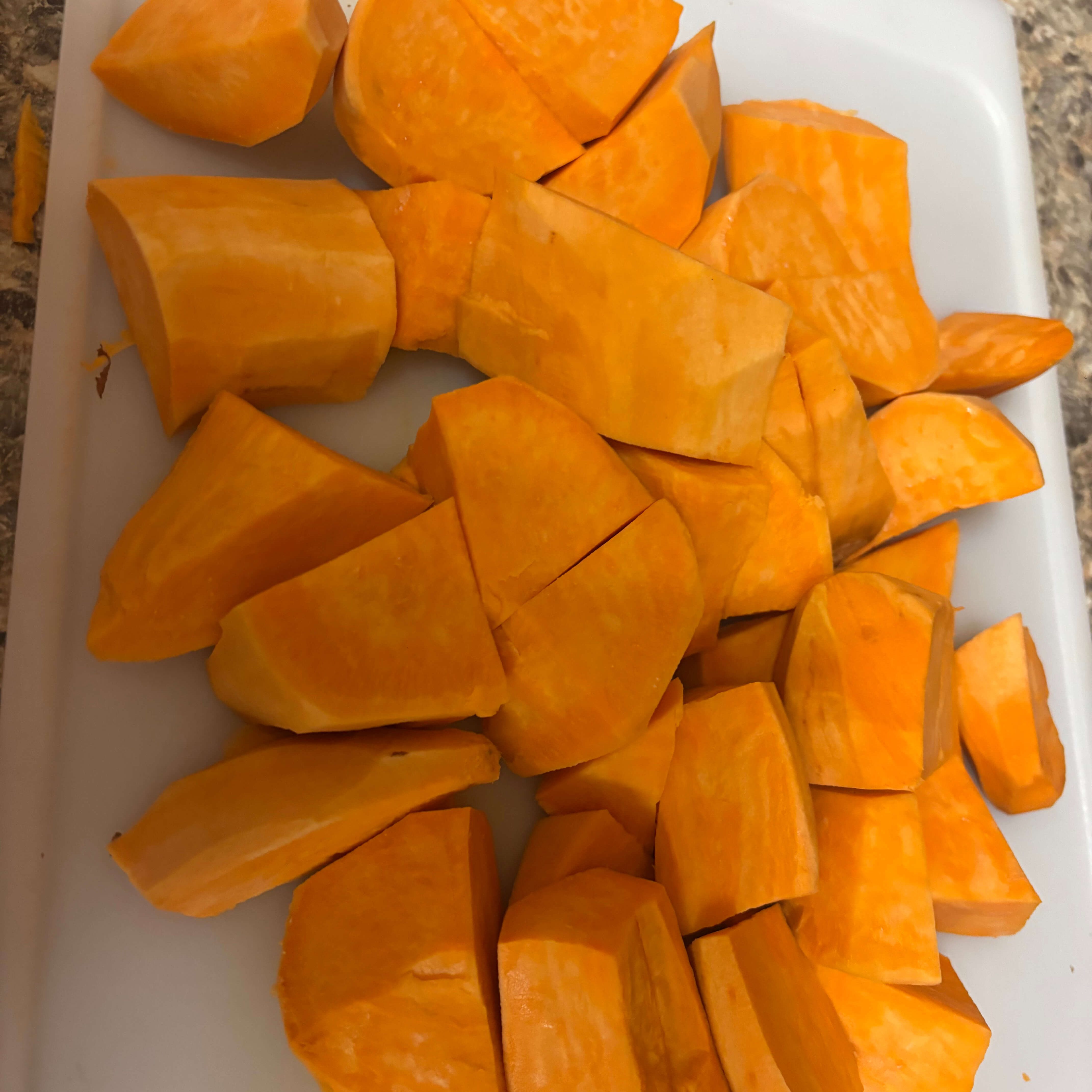 - 3 large sweet potatoes, peeled and cubed